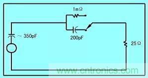 這些實驗數(shù)據(jù)可用其他方法來解釋。發(fā)射最小值(線電流為0的時候)是濾波器無偏置電流時表現(xiàn)出來的效果。峰值發(fā)射與最小發(fā)射的比率,即降級因子,用來衡量線電流偏移量對濾波器實際效果的影響。降級因子較大表明共模扼流圈磁芯完全沒有得到恰當?shù)氖褂?,較好的濾波器的“固有降級因子”差不多在2—4之間。它是由兩種現(xiàn)象產(chǎn)生的:第一,60Hz充電電流引起的電感減?。ㄈ缟纤觯?;第二,橋式整流器的正向及反向導通。共模發(fā)射的等效電路由一個阻抗約為200PF的電壓源、二極管阻抗和LISN的共模阻抗組成,如圖2所示。當橋式整流器正向偏置時,在源阻抗、25和LISN共模阻抗之間會產(chǎn)生分壓現(xiàn)象。當橋整流器反向偏置時,在源阻抗、整流橋反偏電容、LISN之間產(chǎn)生分壓現(xiàn)象。當二極管整流橋反向偏置電容較小時,對共模濾除有一定效果。當整流橋正向偏置時則對共模濾除沒有影響。