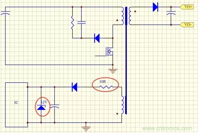 但是不要忘了,上面分析的這個(gè)還是比較好的情況來(lái)分析的,我們?cè)囅胍幌?,你的變壓器Vcc繞組上的電壓不可能設(shè)計(jì)的那么準(zhǔn),比如在輸出空載時(shí)Vcc繞組是14V,如果主輸出功率比較大,Vcc可能上升都18V,20V甚至更高,另外Vcc電壓飄跟電源功率,跟變壓器繞制工藝也有很大關(guān)系,這些都是不好把控的,調(diào)試的需要限流電阻也不一定是10Ω,所以這個(gè)方案肯定是不行的。
