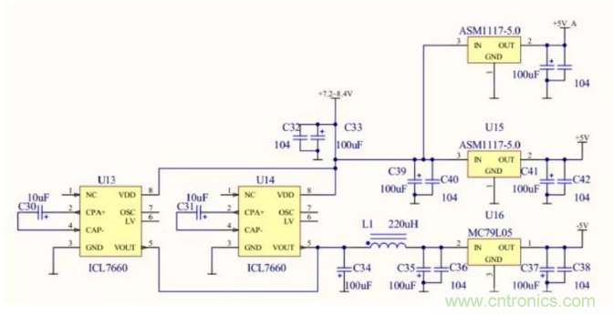 一般的開關(guān)電源芯片都能產(chǎn)生負(fù)電壓,實在不行用用開關(guān)電源輸出的PWM去推電荷泵,也可以產(chǎn)生較大的電流,成本也很低,不知紋波要求多少,電荷泵用LC濾波之后紋波相當(dāng)小的。7660是電荷泵所以電流很小。