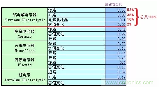 電容失效方式分布:電容大部分是以短路形式失效的,特別鉭電容,要特別注意。