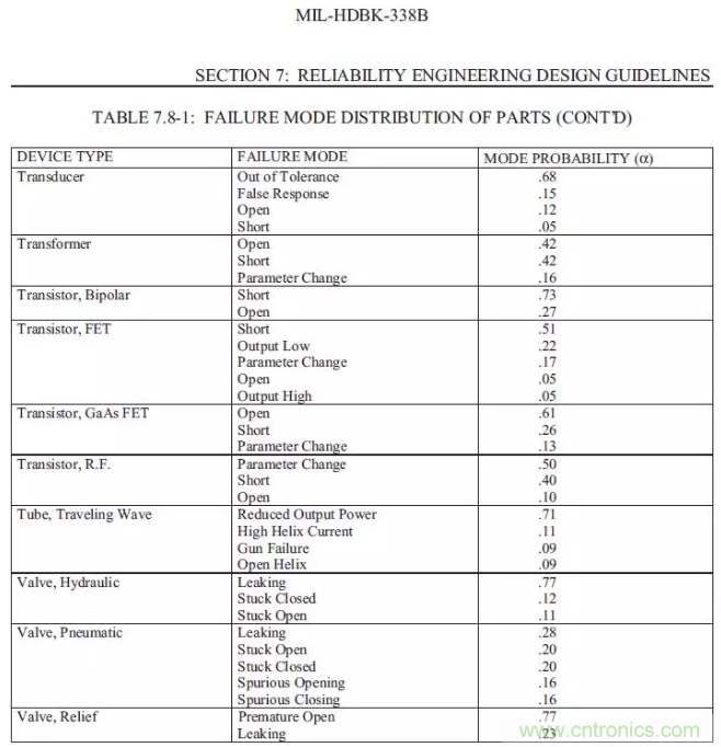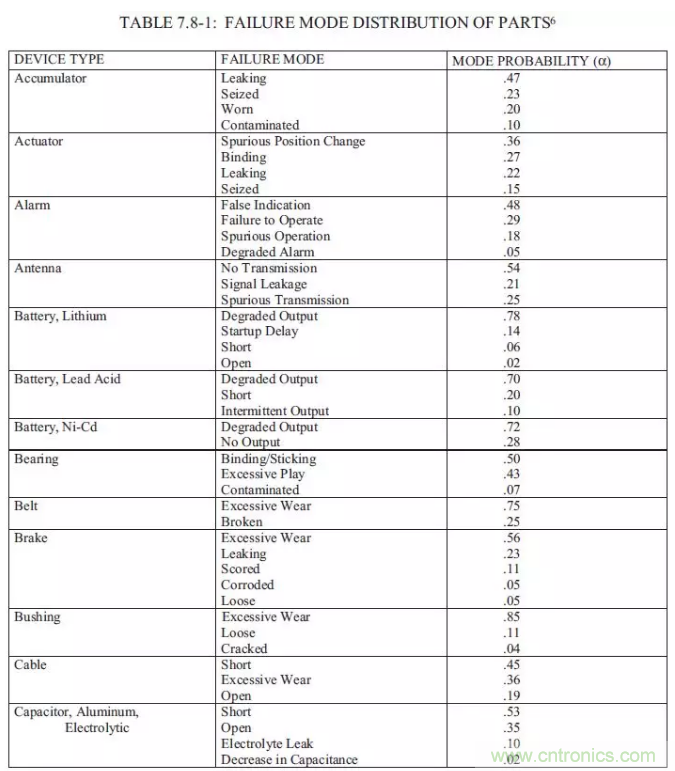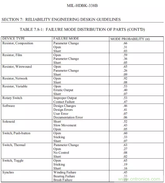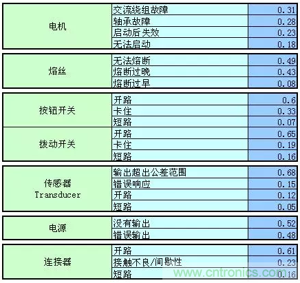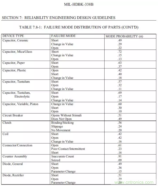 【導(dǎo)讀】以下總結(jié)摘錄MIL-HDBK-338B,美軍可靠性設(shè)計手冊來為FTA(故障樹)做一些支持。如果我們想要進(jìn)行FTA的定量分析,一定要把可靠性預(yù)測先做完,在可靠性前一定要把電壓分布表和溫度分布先進(jìn)行初步的運(yùn)算,通過下面的的表格,大概可以預(yù)計失效發(fā)生的時候故障的分配比例。