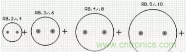 電解電容對應(yīng)的元器件封裝為RB系列,如“RB.1/.2”到“RB.5/1.0”,其中“.1/.2”分別指電容的焊盤間距和外形尺寸。