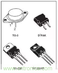 三極管的常用封裝主要有TO-18(普通三極管)、TO-220(大功率三極管)、TO-3(大功率達(dá)林頓管)和TO-92A(普通三極管)等,如圖F1-13所示。