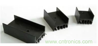 在實(shí)際使用過程中,用戶常常在穩(wěn)壓源上附加散熱片,以避免穩(wěn)壓源長時間工作在大負(fù)載下,散熱條件不足,從而造成過高的溫升而損壞元器件和電路板,圖F1-17所示為常用的散熱片。
