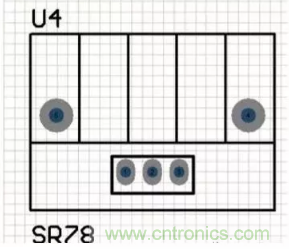 直插式元器件封裝的焊盤一般貫穿整個電路板,從頂層穿下,在底層進(jìn)行元器件的引腳焊接,如圖所示。