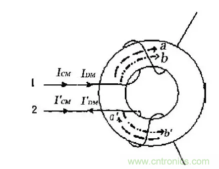 抑制共模干擾的主要方法是應(yīng)用共模扼流圈。共模扼流圈是共模插入損耗中起主導(dǎo)作用的電感元件。它是在一個磁環(huán)/閉合磁路的上下兩個半環(huán)上,分別繞制相同匝數(shù)但繞向相反的線圈。