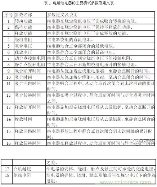 為保證繼電器的質(zhì)量,表1所列參數(shù)都應嚴格進行測試,但其中有些參數(shù)的測試特別需要引起我們的注意。