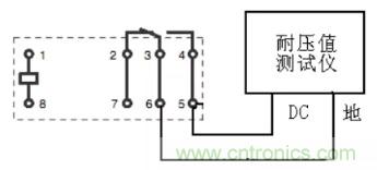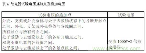 介質(zhì)耐壓(俗稱打高壓)是考核繼電器的殼體、繞阻、觸點及觸點間在規(guī)定的時間內(nèi)承受規(guī)定交流電壓的能力。而絕緣電阻是考核繼電器的殼體、繞阻、觸點及觸點間在效加規(guī)定直流電壓的條件下體現(xiàn)出來的絕緣電阻。國軍標規(guī)定的試驗電壓施加點見表4。