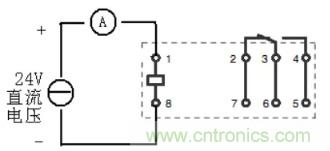 2、測繼電器的功耗(額定電流)和內(nèi)阻;