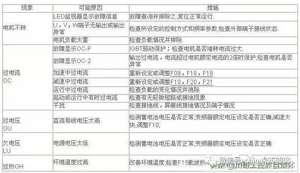 雖然每家的故障代碼可能會(huì)有差異,但是一般離不開過(guò)流(OC),過(guò)載(OL),過(guò)壓(OU),欠壓(LU),過(guò)熱(OH)等著幾類,理論這些可以根據(jù)手冊(cè)的要求來(lái)操作,流程都是傻瓜式的。實(shí)際一般用戶能處理的,就是確保輸入電壓正常,電機(jī)連接線正常,電機(jī)絕緣沒(méi)有問(wèn)題,電機(jī)三相平衡等,然后調(diào)整一下加減速時(shí)間等簡(jiǎn)單處理,下邊說(shuō)一些手冊(cè)上沒(méi)有的故障,這些故障你見過(guò)嗎,知道如何處理嗎,一起來(lái)看看。