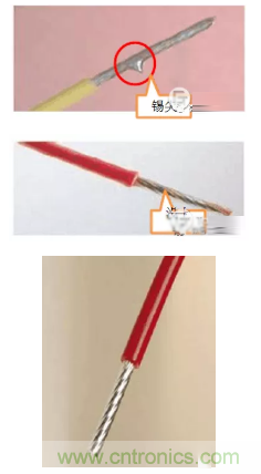 浸錫就是將金屬表面沾上一層錫,防止氧化,方便焊接。時至今日,浸錫在連接器行業(yè)中仍是廣泛應(yīng)用,浸錫的好壞直接影響到產(chǎn)品的性能及使用壽命。我們都知道導(dǎo)體的電阻在電流的作用下會發(fā)熱,電流越大發(fā)熱量也就越高,浸錫工藝可以將一根一根細(xì)導(dǎo)線間的空氣用錫填滿從而減少發(fā)熱量。同時由于多股導(dǎo)線容易散,直接壓在接線端子上時,接觸面積會減少,所以很多廠家選擇浸錫的方式,以免接觸不良發(fā)熱燒壞。浸錫標(biāo)準(zhǔn)比較嚴(yán)格,需均勻,平滑,厚度0.05~0.1mm,不能有錫尖,凸錫球,漏錫,堆疊,變形等情況發(fā)生,否則反而會加大接觸電阻,增加發(fā)熱量。
