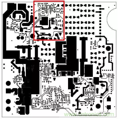 圖3 這是自動(dòng)測(cè)試設(shè)備的PCB,因?yàn)槭孪攘私膺^(guò)那顆SEPIC轉(zhuǎn)換器(以紅框標(biāo)示),我的設(shè)計(jì)第一次就成功。