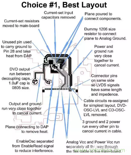 我在某家半導(dǎo)體公司任職時(shí),做的是驅(qū)動(dòng)PC用DVD刻錄機(jī)內(nèi)雷射頭的芯片;我看了一眼某客戶設(shè)計(jì)的軟性電路板原型,就知道他們?nèi)狈Ω咚倩蛏嵩O(shè)計(jì)方面的經(jīng)驗(yàn),畢竟他們之前做的CD刻錄機(jī)數(shù)據(jù)速率比較低,而且用的芯片不會(huì)產(chǎn)生太多熱度。而我們花了大半年的時(shí)間教客戶該怎么設(shè)計(jì)他們的PCB(圖5)。