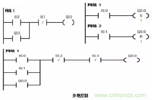 多輸出自鎖控制即多個負載自鎖輸出,有多種編程方法,可用置位、復位指令