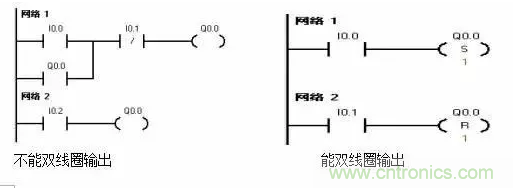(2)梯形圖中同一編號的“繼電器線圈”只能出現(xiàn)一次,通常不能出現(xiàn),但是它的觸點可以無限次地重復使用。