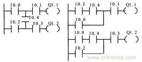 (2)合理排列梯形圖,使輸入/輸出響應滯后現(xiàn)象不影響實際響應速度。通??筛鶕?jù)工藝流程圖按動作先后順序排列各輸出線圈,同時兼顧內(nèi)部線圈、時間繼電器等線圈的排列順序,使輸入/輸出延遲響應不影響實際輸出對響應速度的要求。