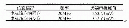 表1 電流流向不同時的串?dāng)_峰值