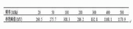表2 干擾源頻率取不同值時的串?dāng)_峰值