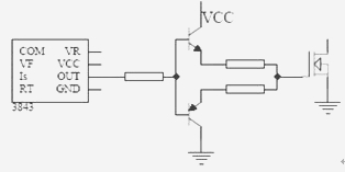 因此得出結(jié)論是,單靠提高開(kāi)關(guān)速度來(lái)提高DC-DC轉(zhuǎn)換器效率是不可取的。于是,如何選擇合適的驅(qū)動(dòng)電路參數(shù)、不斷地優(yōu)化驅(qū)動(dòng)電路的設(shè)計(jì),在提高DC-DC轉(zhuǎn)換器的EMC性能的同時(shí)又保證總效率等其他參數(shù)指標(biāo)不受到大的影響,是近年來(lái)發(fā)展的一個(gè)新方向。例如,在驅(qū)動(dòng)電路中保留驅(qū)動(dòng)電阻的同時(shí)加入推挽電路以代替二極管,這樣就可以方便地分別調(diào)節(jié)控制開(kāi)和關(guān)的速度,再權(quán)衡EMC性能和總效率指標(biāo)的關(guān)系,以達(dá)到最理想的效果。如圖3所示。