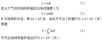 很多人都不清楚,地球也是一個帶電體。根據(jù)實驗測試,在地球表面存在一個垂直向下的穩(wěn)定電場,電場強度E約為100伏/米,場強的大小隨高度的增加而減弱。另外,根據(jù)實驗測試,在地面附近大氣的電導(dǎo)率σ0約為3×10-14西蒙/米,且隨高度的增加而增加。由此可知地球表面的電流密度j的方向指向地心,大小為: