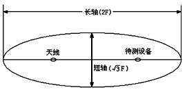 10kHz~1000MHz頻段的輻射測試場地應該是一個空曠、平坦的場地,在其邊界范圍內(nèi)無架空線,附近無反射結(jié)構(gòu)物(如鋼筋水泥建筑和高大樹木等),而且具有足夠大的尺寸,使天線、試品和反射結(jié)構(gòu)物之間能充分分開。滿足標準的輻射測試場地應該是一個由長軸等于兩倍焦距(F)、短軸等于倍焦距的橢圓所包圍的場地,如圖1所示。試驗時,EUT和測量天線將分別處在兩個焦點上。