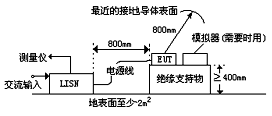 在輻射試驗場上測量時,EUT應處于和輻射測量相同的狀態(tài)下,且EUT應處在比其邊界至少擴展O.5m或最小尺寸為2m×2m的金屬接地平板上。