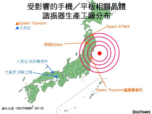 Epson Toyocom位于福島縣南相馬市的福島事務(wù)所更因廠房位于福島第1核電廠直徑16公里內(nèi),工廠作業(yè)停擺,復(fù)工時(shí)程無(wú)法估計(jì)。