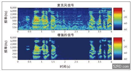圖1.在采用瞬時非穩(wěn)態(tài)噪聲抑制技術前后的時域波形。