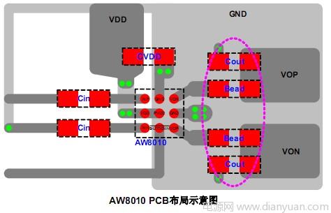 2:磁珠、電容緊靠芯片輸出管腳放置,盡量減短輸出管腳到磁珠的布線長(zhǎng)度。