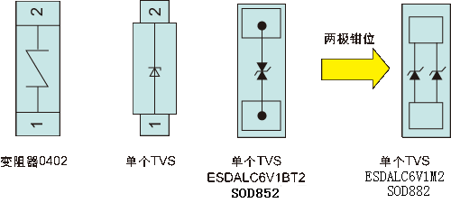 正當(dāng)單線保護器件被廣泛用于抑制ESD放電時,一種在同一封裝內(nèi)集成兩個并聯(lián)二極管的兩級鉗位概念產(chǎn)生了。圖1對傳統(tǒng)的單線ESD保護與新型兩級鉗位二極管組件進行了對比。