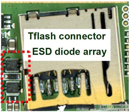 以鍵盤應(yīng)用為例,因為ESD源是一個含有多個觸點的大區(qū)域,最好是設(shè)計類似于單線路TVS的保護組件,圍繞電路板在每個按鍵后放置一個ESD二極管。如果采用陣列設(shè)計,保護功能將得到保證,但是這種設(shè)計將會受到潛在的ESD問題的影響,例如二條線路之間的輻射問題。在這種情況下,手機內(nèi)部的ESD干擾控制并沒有被全面優(yōu)化。