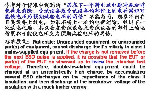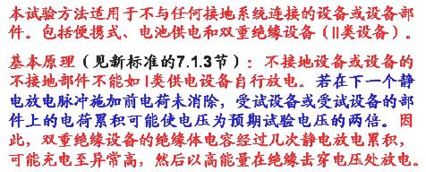 關(guān)于不接地設(shè)備的試驗(yàn)配置,新版標(biāo)準(zhǔn)與舊版標(biāo)準(zhǔn)的配置是相同的。關(guān)鍵是在單次放電時(shí)(無論是空氣的,還是接觸的),試品上的電荷應(yīng)當(dāng)在每次施加靜電放電脈沖之前先行釋放(釋放掉在需要施加靜電放電的金屬點(diǎn)或金屬部位上的電荷)。