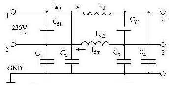 上述無(wú)源EMI濾波器是互易的,它既能抑制電子鎮(zhèn)流器的電磁干擾送入電網(wǎng),又能抑制電網(wǎng)內(nèi)的電磁干擾進(jìn)入電子鎮(zhèn)流器中。