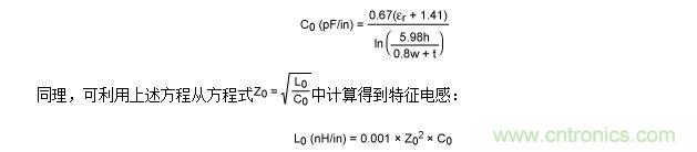 舉例說明,假設(shè)PCB厚度為0.0625in (h = 62.5 mil),1盎司覆銅引線(t = 1.35 mil),寬度為0.01in (w = 10 mil),采用FR-4電路板。注意,F(xiàn)R-4的εr典型值為4.35法拉/米(F/m),但范圍可從4.0F/m至4.7F/m。本例計(jì)算得到的特征值為Z0 = 134Ω,C0 = 1.04pF/in,L0 = 18.7nH/in。