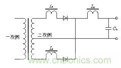 輸出整流二極管的反向恢復(fù)問題可以通過在輸出整流管上串聯(lián)一個飽和電感來抑制,如圖5所示,飽和電感Ls與二極管串聯(lián)工作。飽和電感的磁芯是用具有矩形 BH曲線的磁性材料制成的。同磁放大器使用的材料一樣,這種磁芯做的電感有很高的磁導(dǎo)率,該種磁芯在BH曲線上擁有一段接近垂直的線性區(qū)并很容易進入飽和。實際使用中,在輸出整流二極管導(dǎo)通時,使飽和電感工作在飽和狀態(tài)下,相當(dāng)于一段導(dǎo)線;當(dāng)二極管關(guān)斷反向恢復(fù)時,使飽和電感工作在電感特性狀態(tài)下,阻礙了反向恢復(fù)電流的大幅度變化,從而抑制了它對外部的干擾。