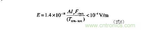 準則6 對于采用的驅(qū)動門電路,要使其上升沿時間要盡可能長。式6表明,輻射與上升時間的倒數(shù)成正比。