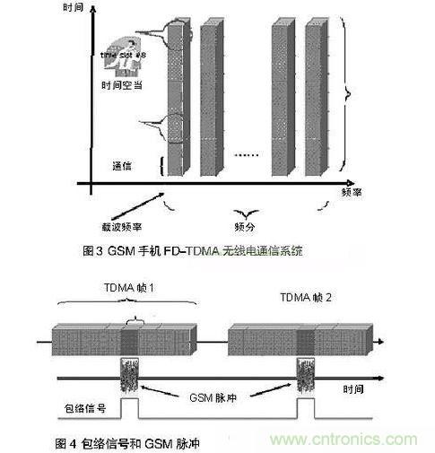 GSM(全球通)手機(jī)標(biāo)準(zhǔn)使用頻分多路傳輸和時(shí)分多路傳輸,同時(shí)傳送大量電話,如圖3所示。