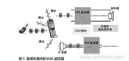 在音頻電路中如有電磁干擾(EMI),會(huì)出現(xiàn)嘶嘶、噼啪、嗡嗡等聲音,聲音質(zhì)量很差。手機(jī)用戶無法忍受這樣的干擾。因此,必須設(shè)法過濾音頻電路的電磁干擾。