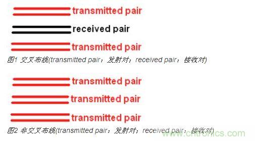 為了盡可能降低緊密耦合線對(duì)之間的串?dāng)_,微帶線采用收發(fā)交叉布線而帶狀線應(yīng)用收發(fā)非交叉布線是一個(gè)更好的選擇。