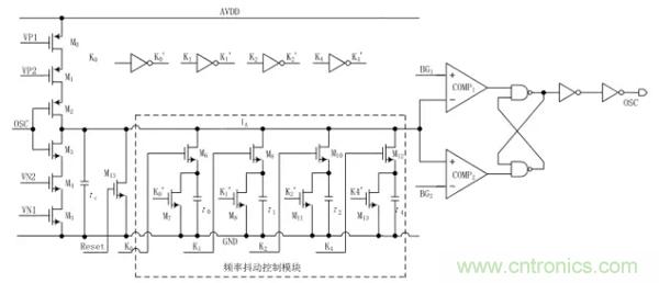 本文所設計的周期性頻率抖動振蕩器[6,7]的系統(tǒng)框圖如