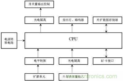 圖1為汽車行駛記錄儀硬件結(jié)構(gòu)原理。信號的抗干擾處理是通過光電隔離來實(shí)現(xiàn)。車載設(shè)備的電源系統(tǒng)對設(shè)備的可靠運(yùn)行影響很大,好的電源電路能夠過濾掉許多通過電源線傳入的干擾信號。