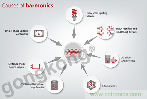 變頻器中使用的經(jīng)典整流器會產(chǎn)生高達50次(2.5 kHz)的諧波。諧波會在電網(wǎng)中產(chǎn)生相關(guān)的問題,但變頻器的普及,這個頻段已經(jīng)被EN 61000-3-4和3-2等標(biāo)準(zhǔn)所覆蓋。