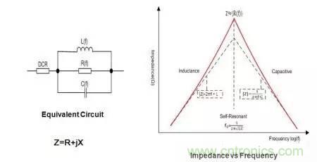 磁珠(Ferrite bead)的等效電路是一個(gè)DCR電阻串聯(lián)一個(gè)電感并聯(lián)一個(gè)電容和一個(gè)電阻。DCR是一個(gè)恒定值,但后面三個(gè)元件都是頻率的函數(shù),也就是說(shuō)它們的感抗,容抗和阻抗會(huì)隨著頻率的變化而變化,當(dāng)然它們阻值,感值和容值都非常小。