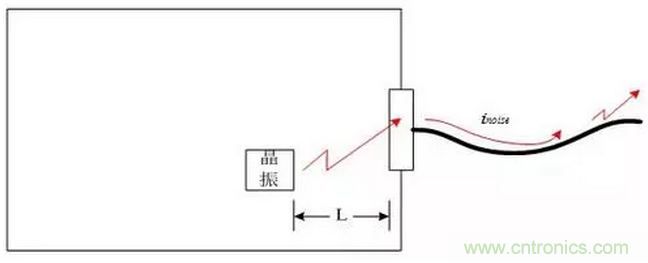 7、非屏蔽電纜原則上禁止直接從屏蔽體中出線。特殊情況下允許直接出線,但是要求屏蔽體內(nèi)側(cè)(或者外側(cè))電纜的長(zhǎng)度不得越過(guò)80mm,注意這個(gè)尺寸包括PCB上面的走線,如果有濾波電路,指濾波電路與屏蔽體之間的電纜長(zhǎng)度。