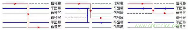 3、時(shí)鐘線和信號(hào)線盡量不要換層走線,如確因?qū)嶋H情況需換層時(shí),在走線過(guò)孔處,需打地過(guò)孔。