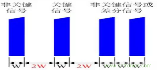 4、時(shí)鐘線、總線、射頻線等關(guān)鍵信號(hào)走線和其他同層平行走線應(yīng)滿(mǎn)足3W原則。