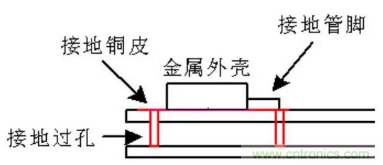 12、金屬外殼接地的器件如晶振,應(yīng)在其投影面的頂層上鋪接地鈾皮,目的是通過(guò)金屬外殼與接地銅皮之間的分布電容來(lái)抑制其對(duì)外輻射和提高抗干擾能力。