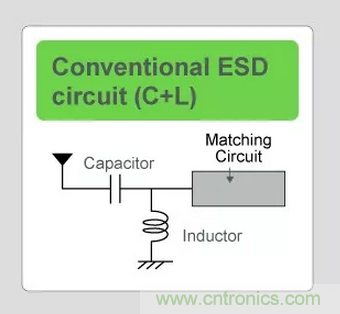 【導讀】L+C無論如何會出現(xiàn)ESD保護性能不足的可能。特別是用金屬外殼或金屬框架的天線,ESD保護性能的問題一直在增加。另外,為了提高ESD保護性能而降低并聯(lián)的電感值的話,會導致低頻段的插入損耗增加。這該怎么辦呢?