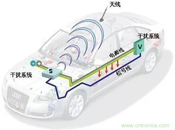 整車對(duì)外干擾,整車輻射干擾;整車抗干擾,整車輻射抗干擾。