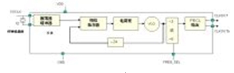 與晶體振蕩器相比,PLL合成器是一種更為復(fù)雜的系統(tǒng)時鐘源。其中,單從PLL來講,它通常由相頻檢測器(PFD)、電荷泵、低通濾波器 (LPF)和壓控振蕩器(VCO)等組成。而通用的PLL合成器時鐘產(chǎn)生器一般需要外部晶體以及放大反向器,并再通過完全集成的PLL和邏輯電路來完成。PLL合成器還可以實現(xiàn)其它更高的功能和特性,如晶體頻率倍頻、輸出相位校準、多個輸出副本和對輸出進行分頻等。圖3顯示 的是典型PLL合成器的結(jié)構(gòu)示意圖。